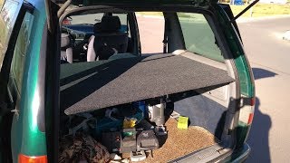 Это видео о том, как сделать полку багажника для Citroen Evasion/Peugeot 806 своими руками из фанеры. Затраты минимальные: лист фанеры 8 мм., 1.5 м.п. автокарпета, 3 петли, горсть саморезов и скобы для степлера.
